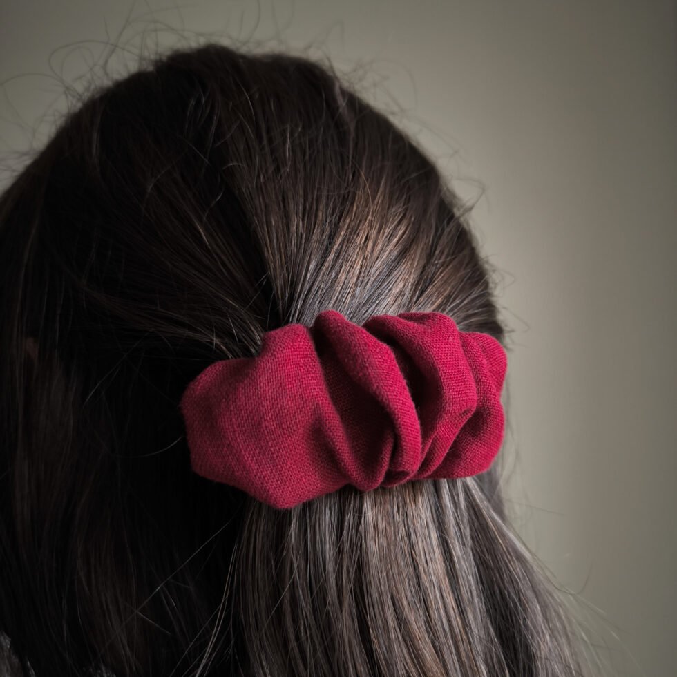 Rankų darbo plaukų segtukas, pagamintas iš lino, aukštos kokybės audinio – tamsios raudonos spalvos . Šis aksesuaras suteikia įvaizdžiui išskirtinumo ir subtilaus žavesio – puikiai tinka tiek kasdienai, tiek ypatingoms progoms.