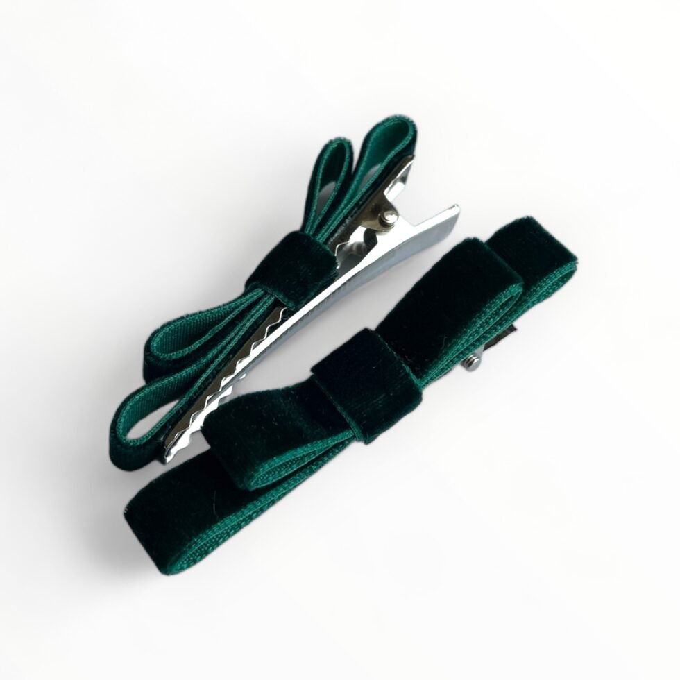 Rankų darbo plaukų segtukai, pagaminti iš švelnaus veliūro audinio.