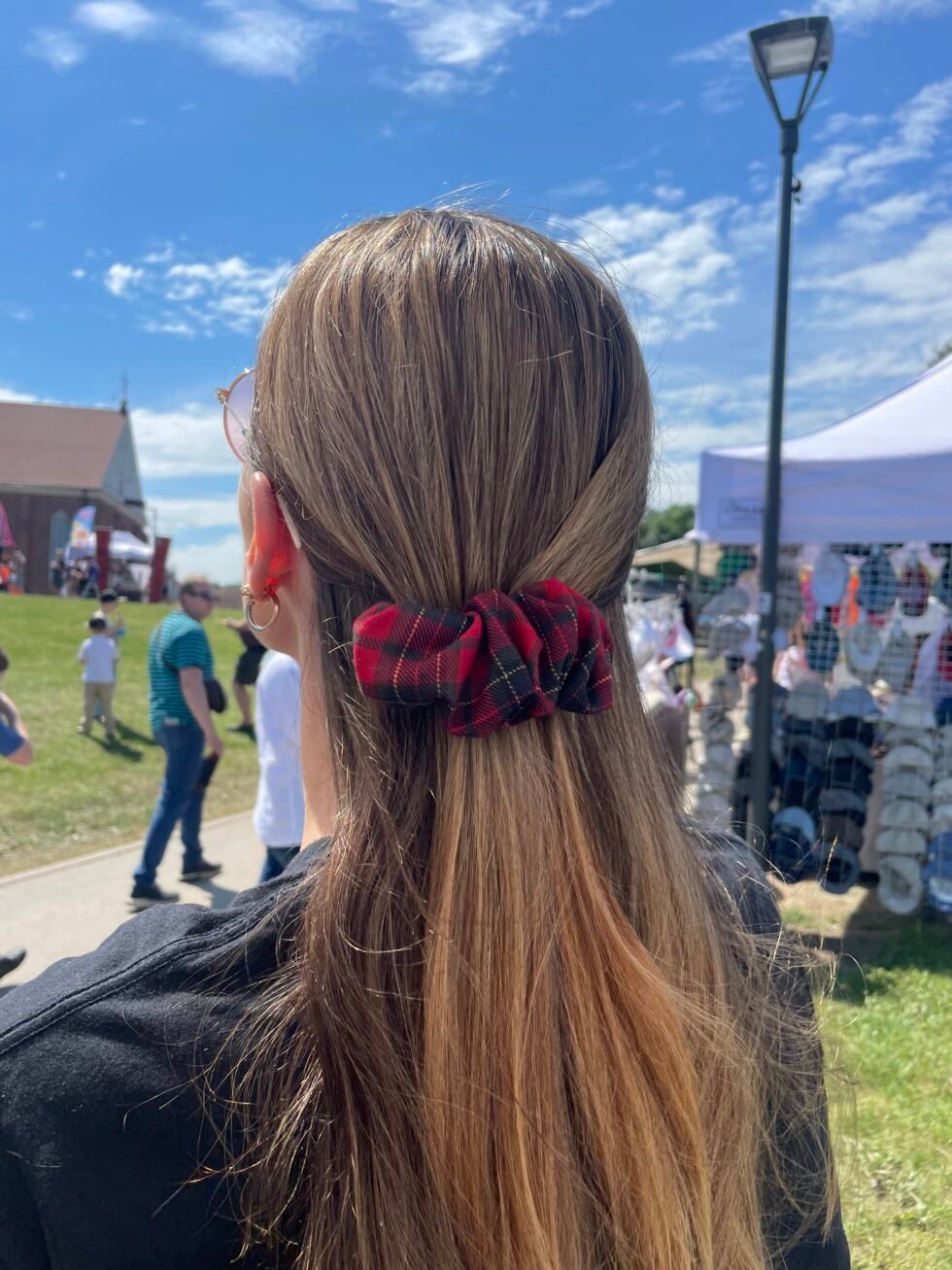 Rankų darbo plaukų segtukas, pagamintas iš švelnaus, aukštos kokybės audinio su klasikiniu raudonai-juodu languotu raštu. Šis aksesuaras suteikia įvaizdžiui išskirtinumo ir subtilaus žavesio – puikiai tinka tiek kasdienai, tiek ypatingoms progoms.