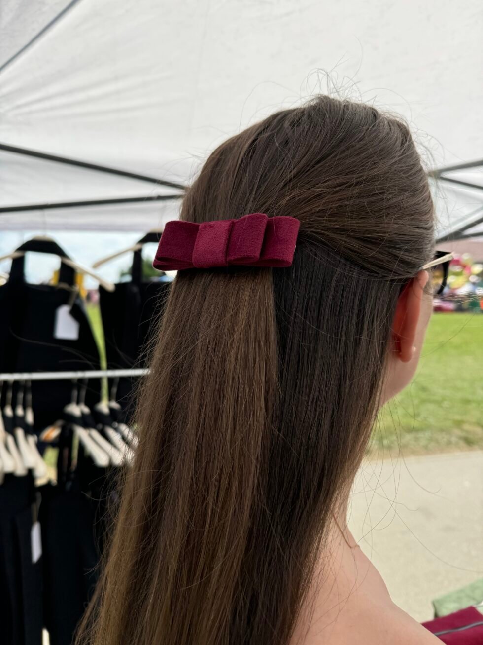 Veliūrinio audinio plaukų segtukai. Kaspinėlio tipo segtukas – rafinuotai ir elegantiškai papuoš Jūsų plaukus ir suteiks išskirtinio žavesio jiems. Lengvi, patvarūs ir komfortiški, susegs bet kokio storio plaukus.